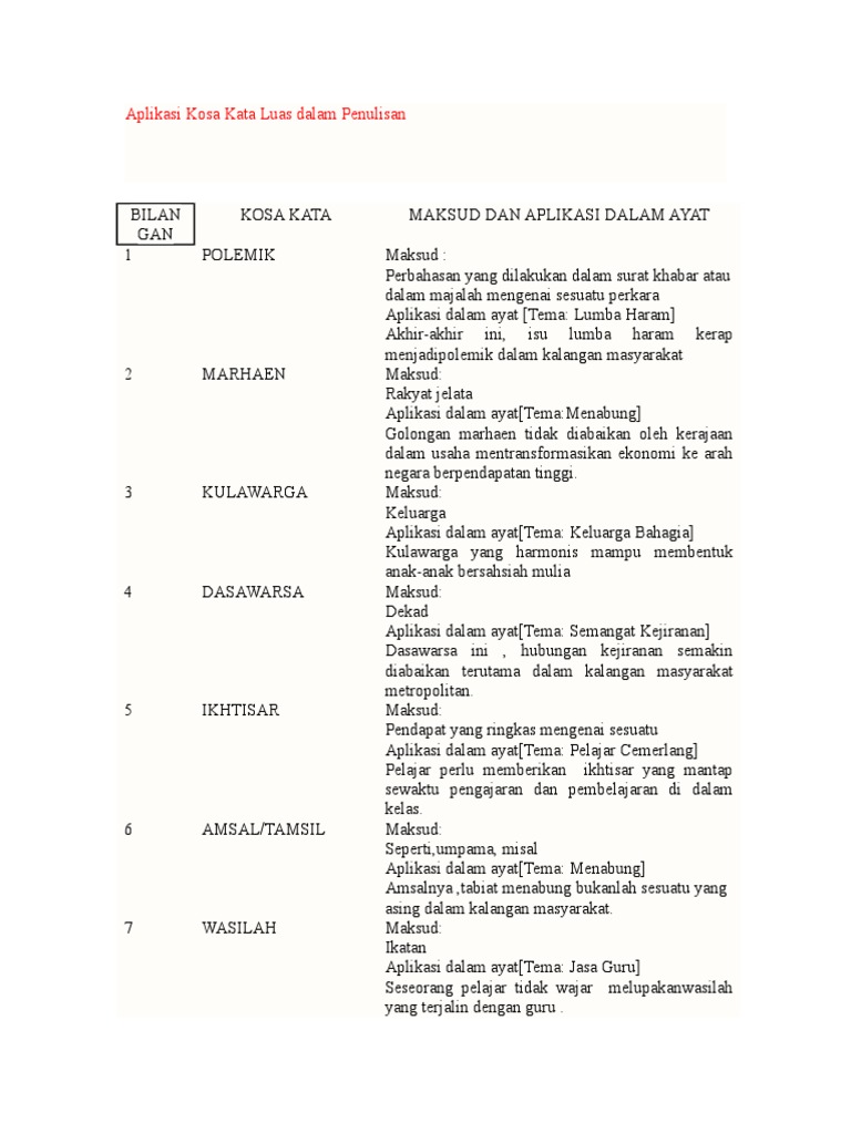 Contoh Kosa Kata Luas